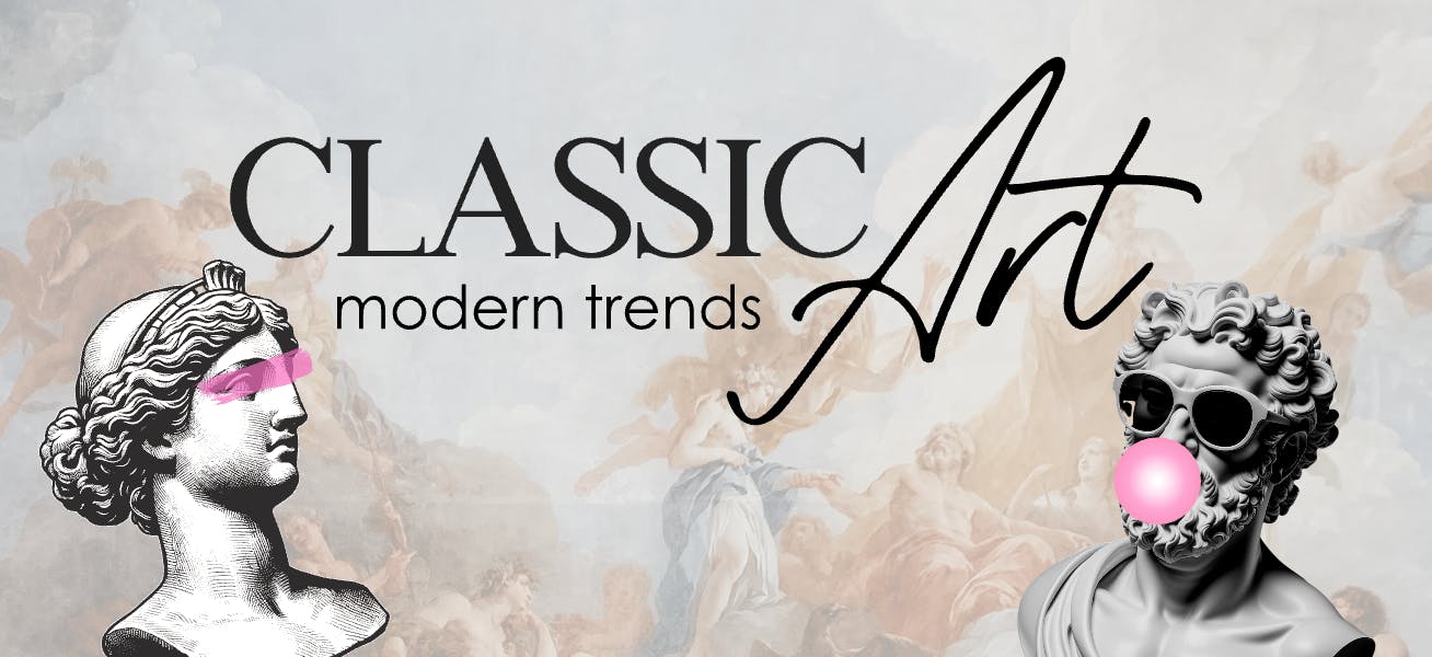 You may have noticed historical images and paintings have appeared on posters and streetwear lately. Designers are blending classical art with modern typography and design elements.