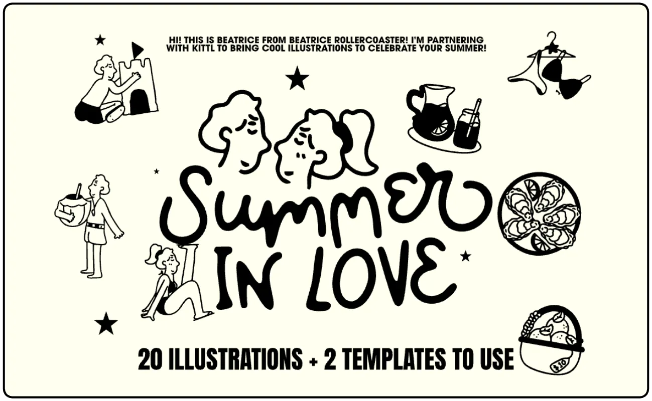 We’re thrilled to release an exclusive design bundle, beautifully crafted by Beatrice Rollercoaster in collaboration with Kittl.