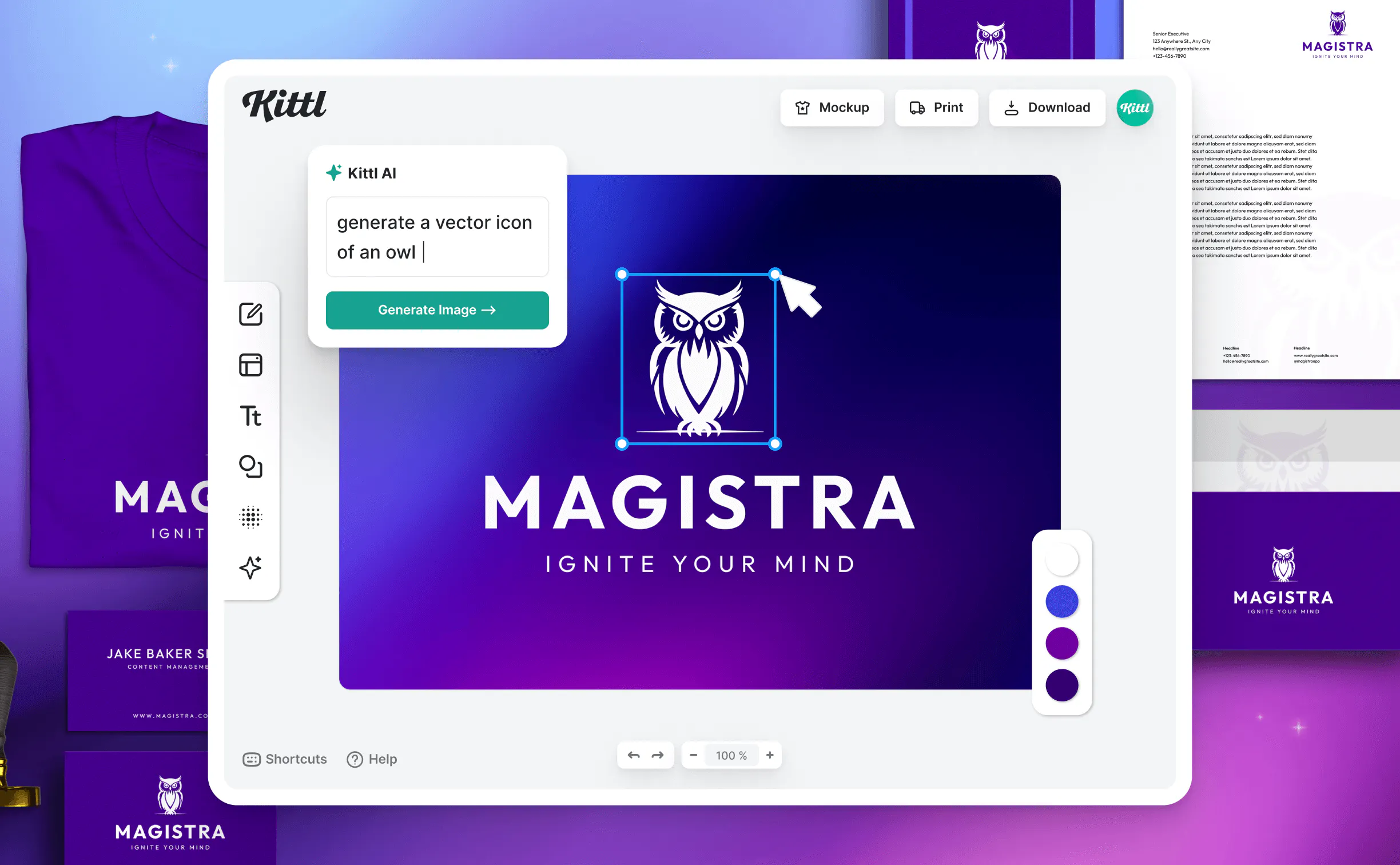 Kittl has pioneered the first text-to-graphic generative AI model in graphic design, simplifying complex workflows into intuitive processes and recently began rolling out Kittl AI ImageGen V2, which supports specific prompts and various aspect ratios, generating beautifully detailed images. Our journey of innovation is ongoing, with plans to build intuitive vector and image editing features and an AI design copilot.