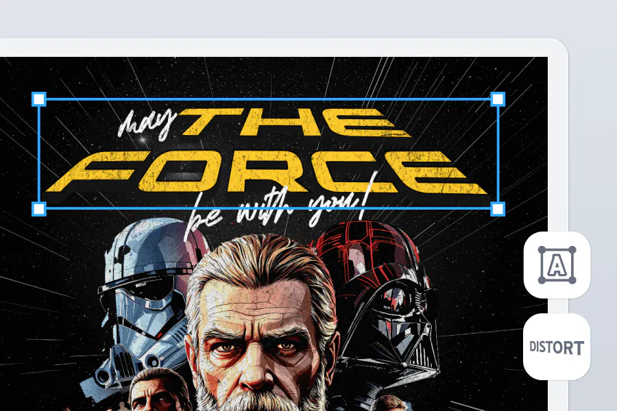 Warp your type like it’s been bent by the Force. Add glows that look like saber burns. Melt a rebel quote until it feels like it’s been intercepted from a glitchy HoloNet transmission.